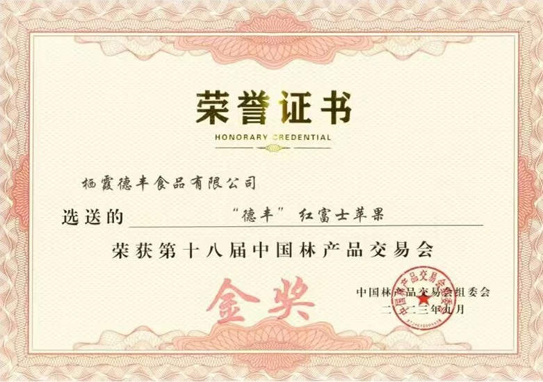 "德豐"紅富士蘋果榮獲第十八屆中國林產(chǎn)品交易會金獎